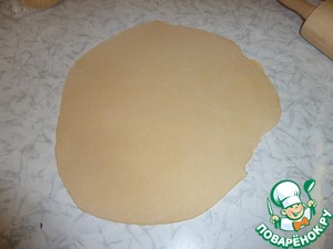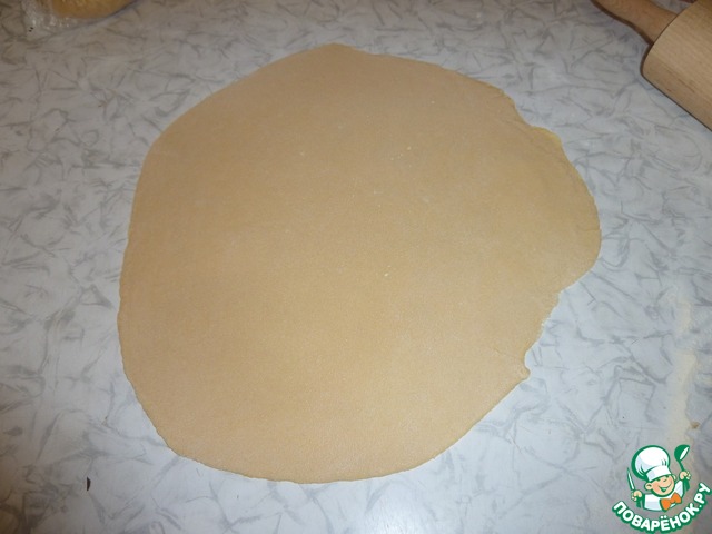 После того как тесто отдохнуло, отрезаем от него кусочек (я отрезаю 1/3 от колобка)и раскатываем как можно тоньше, желательно не толще 2мм