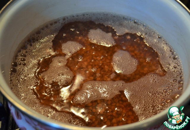 Необходимо отварить гречку. Ядрица от ТМ Мистраль высокого качества, соответственно не требуется предварительно промывать и обжаривать.