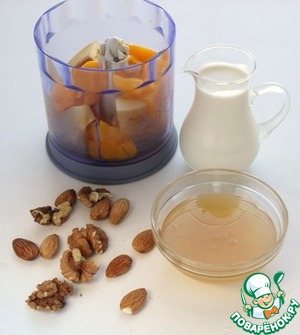 Все ингредиенты: тыкву, айву, мёд, сливки, орехи сложить в чашу блендера