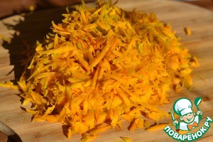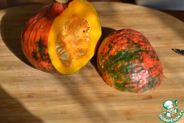 Тыкву помыть, нарезать на четвертинки и почистить.