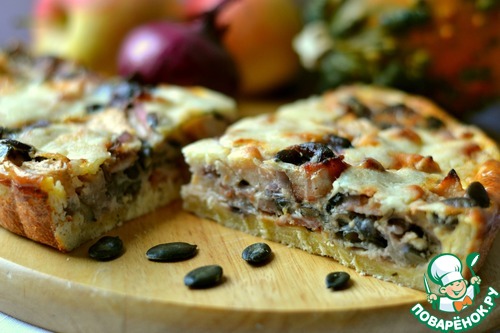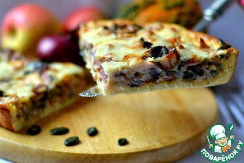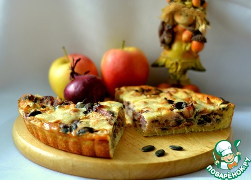 Рецепт «Яблочно-луковый киш с тыквенными семечками»: