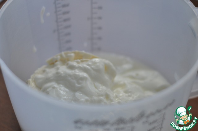 Маскарпоне, сахар, йогурт и лимонный сок взбить миксером.