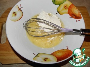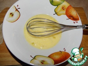 Добавить к яичной массе сливки и горчицу, перемешать.