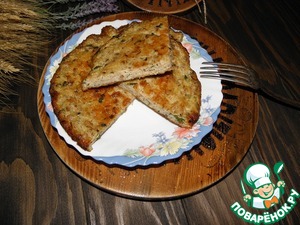 Разогреть на сковородке смесь масел, аккуратно влить яичную массу, жарить минут 6- 7 на достаточно приличном огне