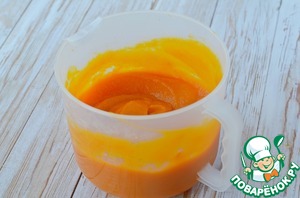 Соединить белки с тыквенно-яблочное пюре, белок добавлять в три-четыре приема, аккуратно перемешать. Ввести тонкой стройкой распущенный желатин, аккуратно перемешать. Разложить десерт по креманкам и поставить в холодильник для охлаждения.