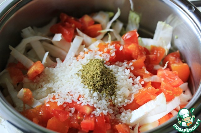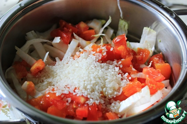 Сложить овощи в холодную кастрюлю Zepter и добавить рис.