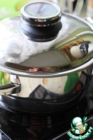 Поставить кастрюлю на холодную плиту, закрыть крышкой, включить средний нагрев.