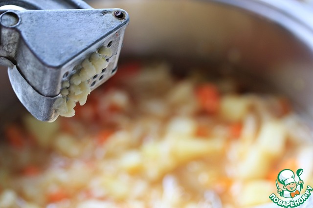 Влить в готовый суп горячую кипяченую воду, доведя его до нужной консистенции, затем прогреть на среднем огне до кипячения, но не кипятить.
