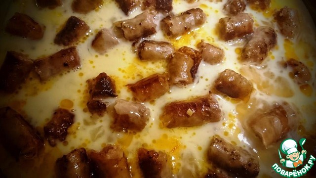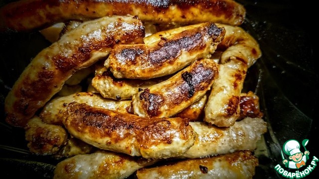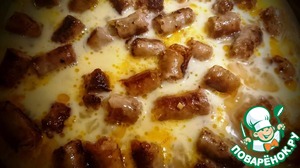 Тем временем, в сковороде, на том же масле обжариваются колбаски и временно перекладываются в другую посуду.