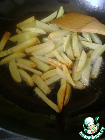 В глубоком сотейнике, а еще лучше – в воке, разогреть масло и обжарить картофель до румяности.