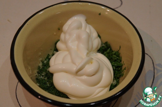 Затем майонез и очень хорошо перемешать. Соус готов.