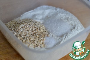 Муку смешать с овсяными хлопьями, солью и сахаром. -