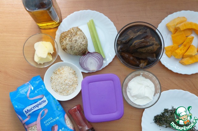 - Грибы (сушеные (у меня ассорти: подосиновики и белые)) — 20 г