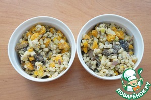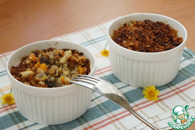Разложить кашу с овощами по формочкам для запекания. Залить бульоном.