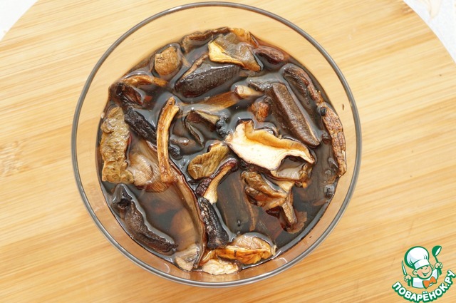- Грибы (сушеные, у меня белые и подосиновики) — 30 г