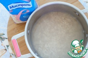 Чашку перловой крупы высыпать в кастрюлю, залить водой, чтобы покрывала перловку и варить на маленьком огне 3 минуты.