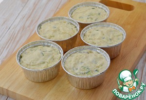 Разложить массу по формам, у меня формы из алюминиевой фольги объемом 150 мл.