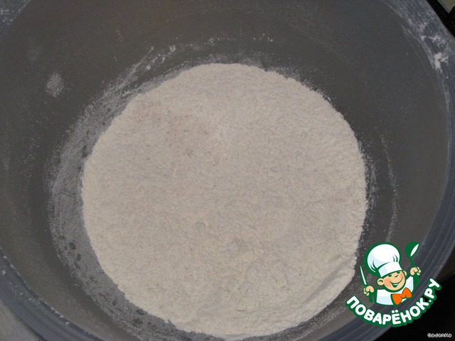Смешать дрожжи с мукой (1,5 стакана), манкой, овсянкой, солью и сахаром.