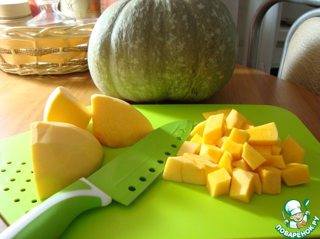 Режем тыкву мелким кусочком.