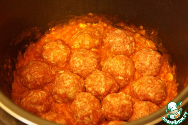 • Тушим тефтельки в соусе до готовности под крышкой.
