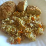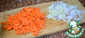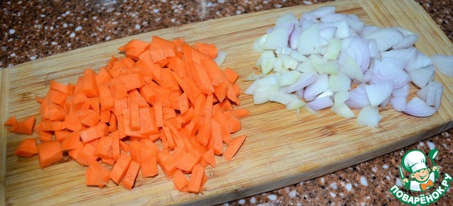 Пока варился рис, приготовьте зажарку. Лук и морковь почистить и порезать.