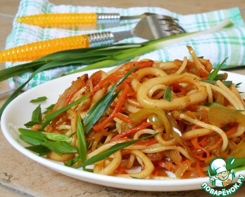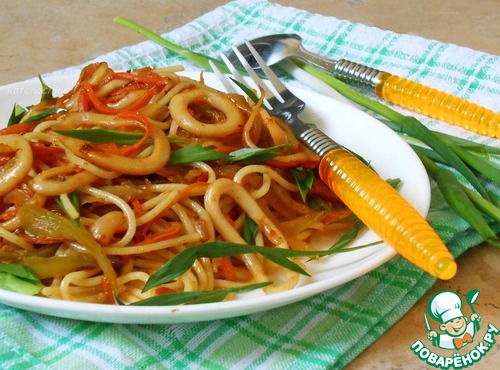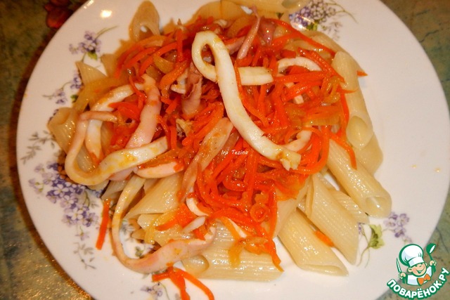 Рецепт «Паста с кальмарами и морковью по-корейски»: