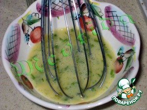 яйцо взбить венчиком вместе с измельченным укропчиком -