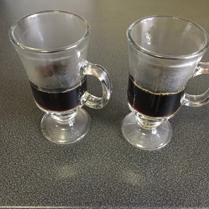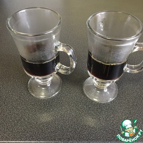 Свежесваренный крепкий кофе наливаем в большие чашки примерно на 1/4 чашки