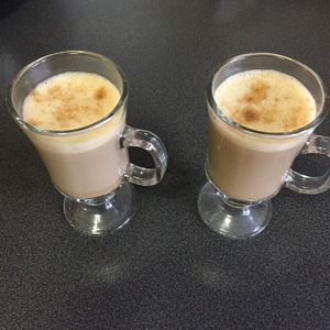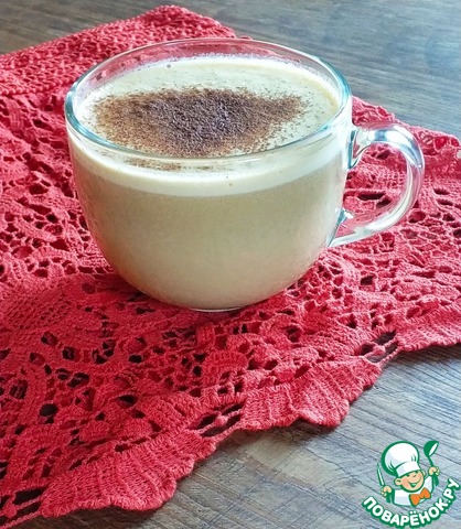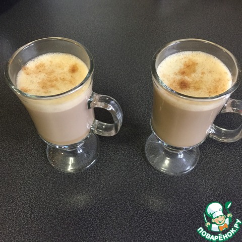 И затем наливаем приготовленную тыквенно-молочную пену. Сверху можно положить взбитые сливки, но я предпочитаю посыпать чуть чуть корицы.