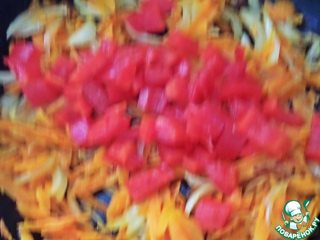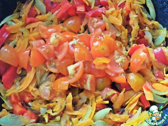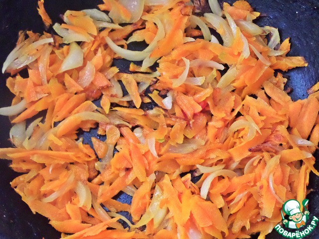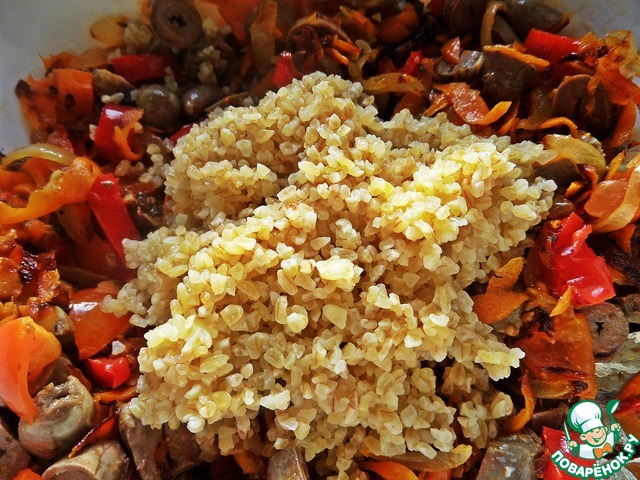 Булгур за это время дошёл до полуготовности, так как его надо проварить, но в нашем блюде он дойдёт в духовке.
