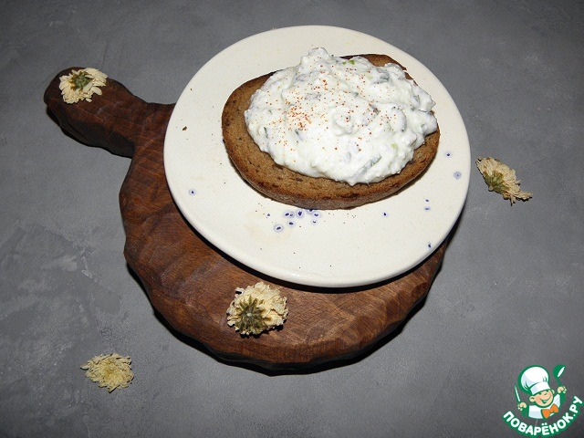 Намазка готова. При подаче сбрызнуть оливковым маслом и посыпать паприкой (или белым перцем)