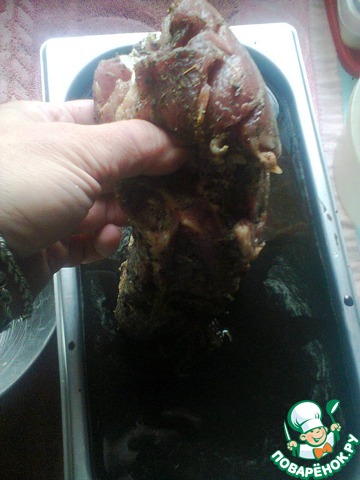 Опускаем в наше "колдовское зелье" мясо. Даем ему там отлежаться, отдохнуть часов эдак 12-48 (такой большой промежуток дается для разных кусков мяса мяса. Чем больше кусок, тем длительнее время его пребывания в "грязевых ваннах")