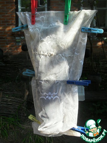 Во избежание поползновений на наш деликатес не всех уснувших на зиму насекомых, прячем мясо в марлю или старый тюль.