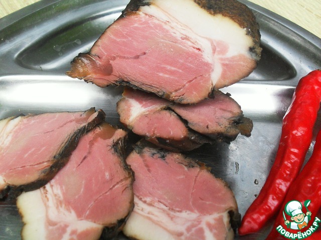 Этот рецепт может кому-то показаться сплошной авантюрой... Кто-то покрутит у виска, кто-то ухмыльнется... Но он имеет право на жизнь! Во-первых, потому что вкусно! Во-вторых, все натуральное! Сразу же хочется обратить ваше внимание на главный компонент рецепта (после мяса, разумеется). Потому что в списке ингредиентов его нет. Это... сажа! Да-да, ваши глаза вас не обманывают. Именно сажа. Самая обычная-печная или каминная ( но только если вы используете дрова, а не уголь). Такое мясо отлично подойдет для бутербродов или в салаты, вместо колбасы (ветчины).