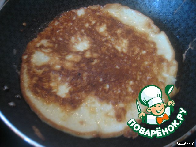 на раскаленную сковороду выкладываем 1/3 теста и обжариваем как обыкновенный блин