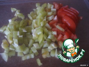 Измельчаем перец и помидор