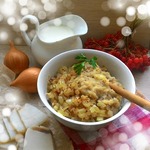 Подаём кашу вместе с луком. При желании можно кашу сразу смешать с луком. Приятного аппетита!