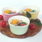 6. Поставьте кокотницы в широкую форму и отправьте в разогретую до 180 градусов духовку на 10-15 минут. При запекании белок должен схватиться, а желток остаться жидким. Хотя, если вы не любите жидкий желток, то подержите яйца в духовке немного подольше