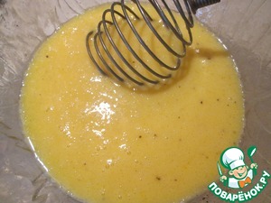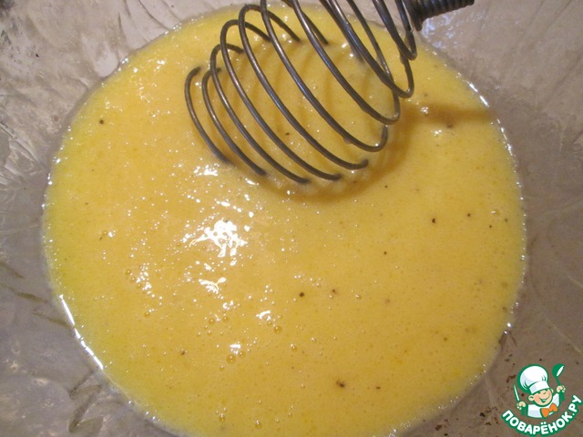 Яйца взбить с молоком и растительным маслом, посолить, поперчить.