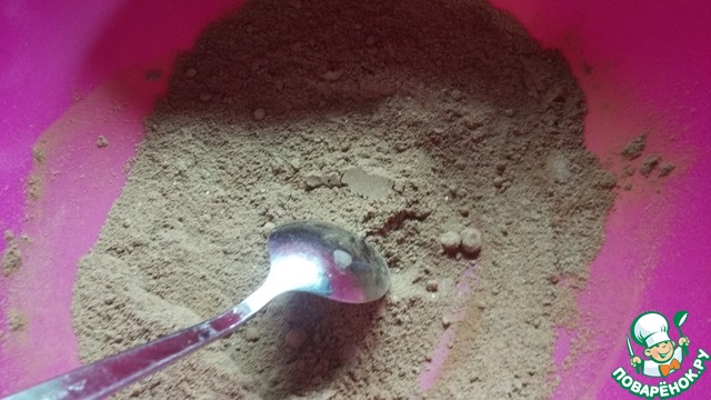 Смешиваем какао и муку. На этом этапе можно добавить и другие специи, которые вы любите.