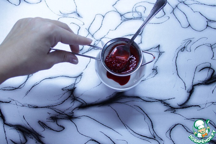 Процедить малиновое варенье через ситечко