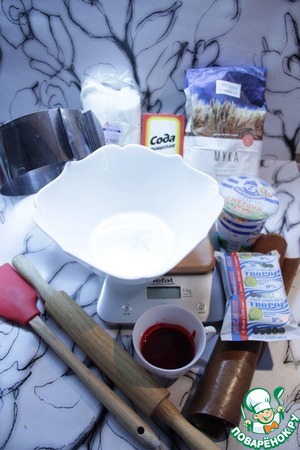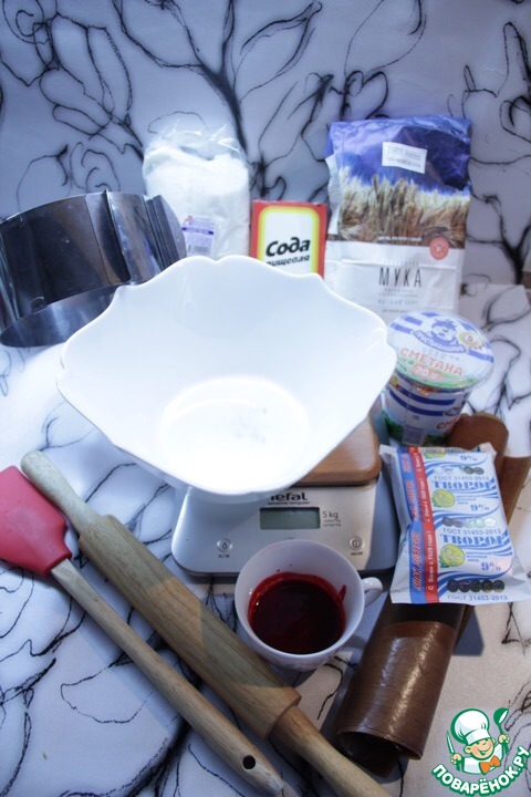 Ингредиенты для «Творожный слоёный торт с малиновым соусом»: