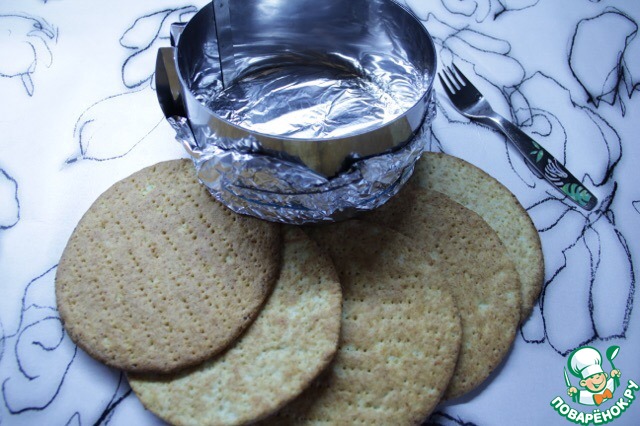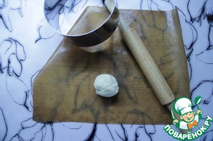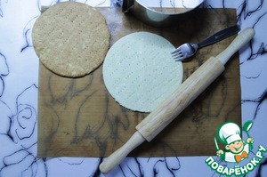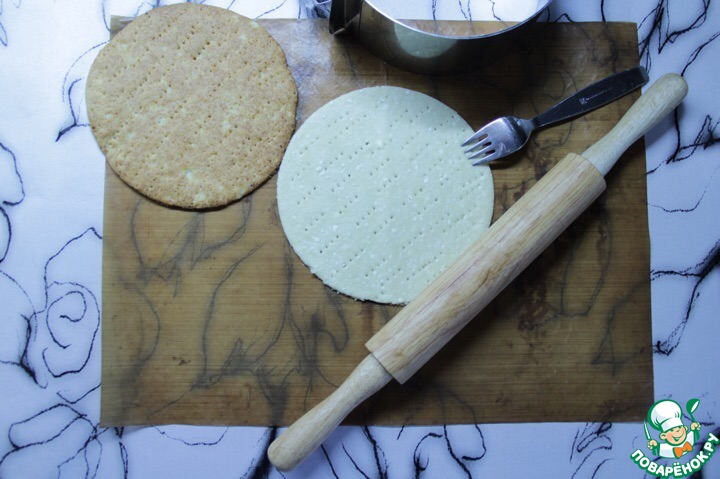Раскатать в пласт и вырезать кольцом круг, тщательно наколоть вилкой