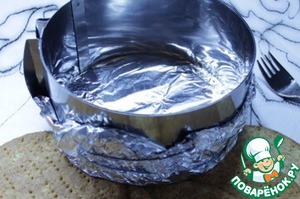 Обернуть кольцо фольгой и закрепить её по окружности резинкой, чтобы было дно