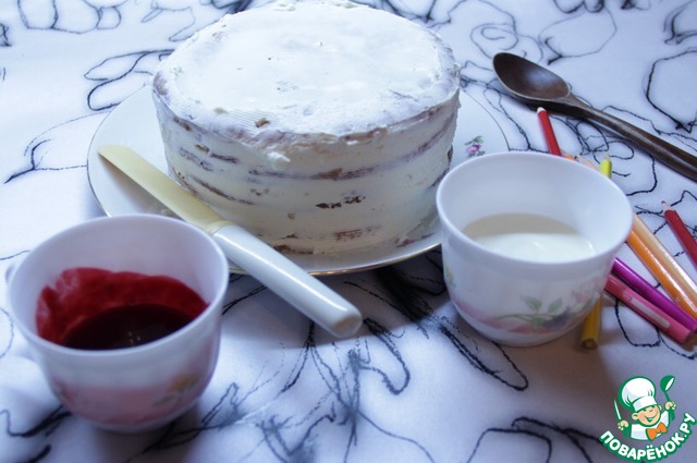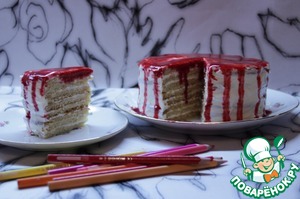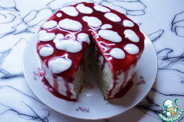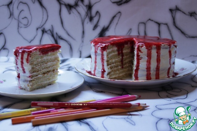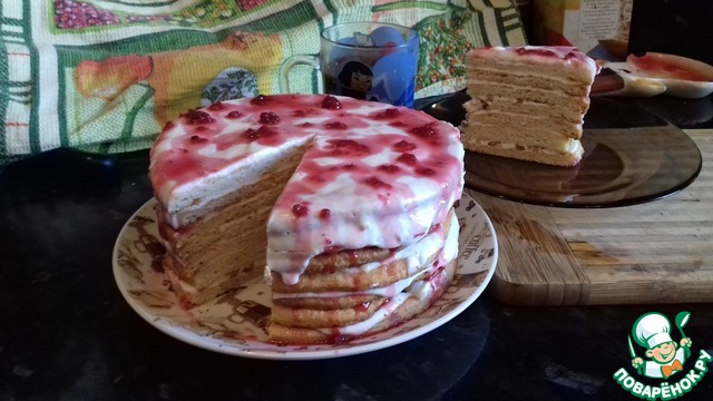 Рецепт «Творожный слоёный торт с малиновым соусом»:
