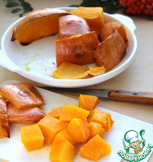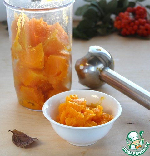 Испеченную тыкву очистить от шкурки и пробить блендером в пюре