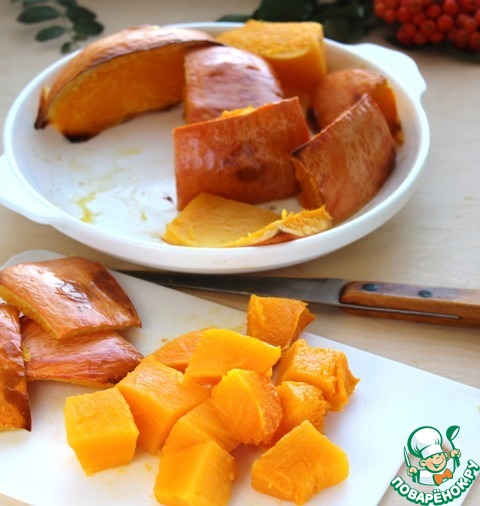 Тыкву вымыть, нарезать на кусочки и со шкуркой запечь в духовке до готовности.