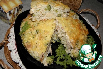 Переложить половину всей массы в форму, смазанную маслом, разровнять.
