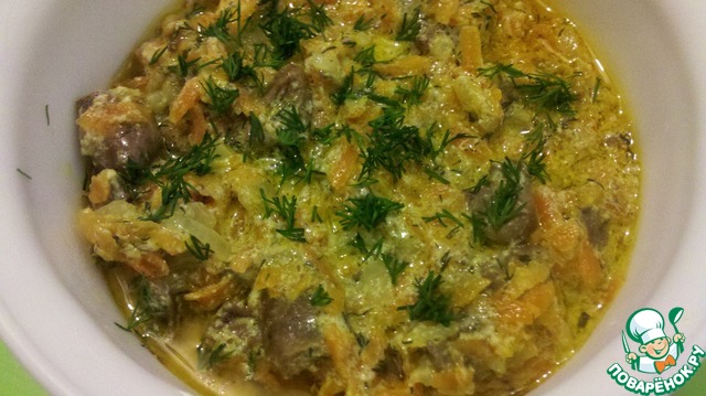 Вроде бы простой и известный рецепт, но с секретами от Сергея Калинина блюдо приобретает просто изысканный вкус. Когда я его приготовила в первый раз, муж просил добавки, пока не съел все. Сердечки выходят невероятно нежными, а морковь с луком, да в сметанке придает им неповторимого привкуса. Короче, попробуйте приготовить и не пожалеете! А тем более, что это не дорого!