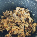 Сразу его слегка подсаливаем, чтобы он не подгорел.